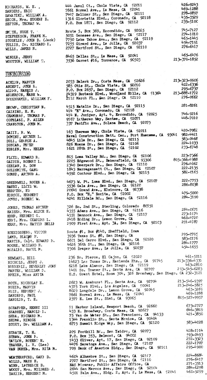 MEMBERSHIPBelow is the PSRMA membership roster as of July 1, 1971. If you joined or renewed in the second half of June, it's possible I didn't get your name in time to include it here. However, if you joined before June 15th, or the information below is incorrect, please contact me, John Hathaway (4215 Dwight Street, San Diego, California, 92105) and we'II get the records straight. Thank you.